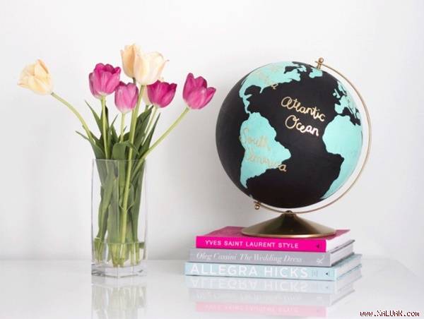 Quả địa cầu này thích hợp với bàn làm việc của cả nam và nữ. Từ một quả địa cầu thông thường, thậm chí đã cũ kỹ, kém tính thẩm mỹ, bạn có thể dễ dàng tân trang lại thành một sản phẩm mới có độ sang trọng và tinh tế hơn, lại không yêu cầu phải có hoa tay hay kiến thức địa lý quá phức tạp.