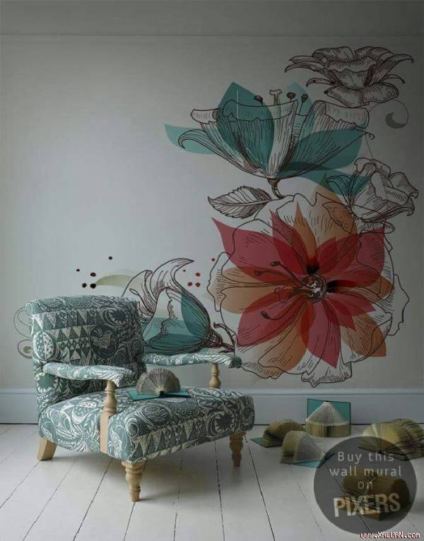 Nếu bạn quyết định dùng giấy dán tường hình hoa cho phòng khách, hãy chắc chắn bức tranh tường này không quá lấn át các yếu tố trang trí khác. Hãy chọn giấy dán tường đơn giản, và để những bông hoa này như đang thực sự nở rộ trong ngôi nhà của bạn.